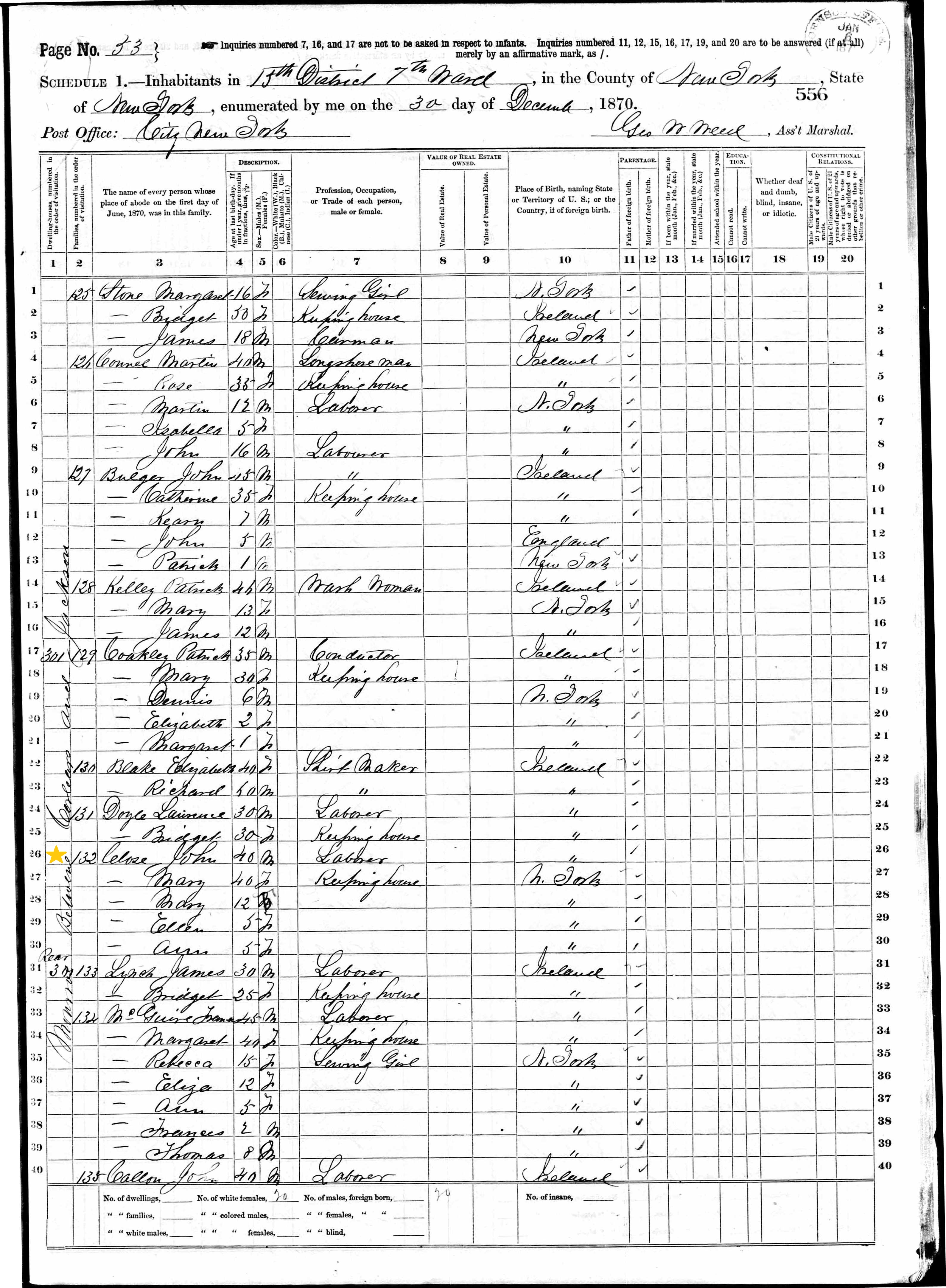 John and Mary Ann Close; 1870 Census
