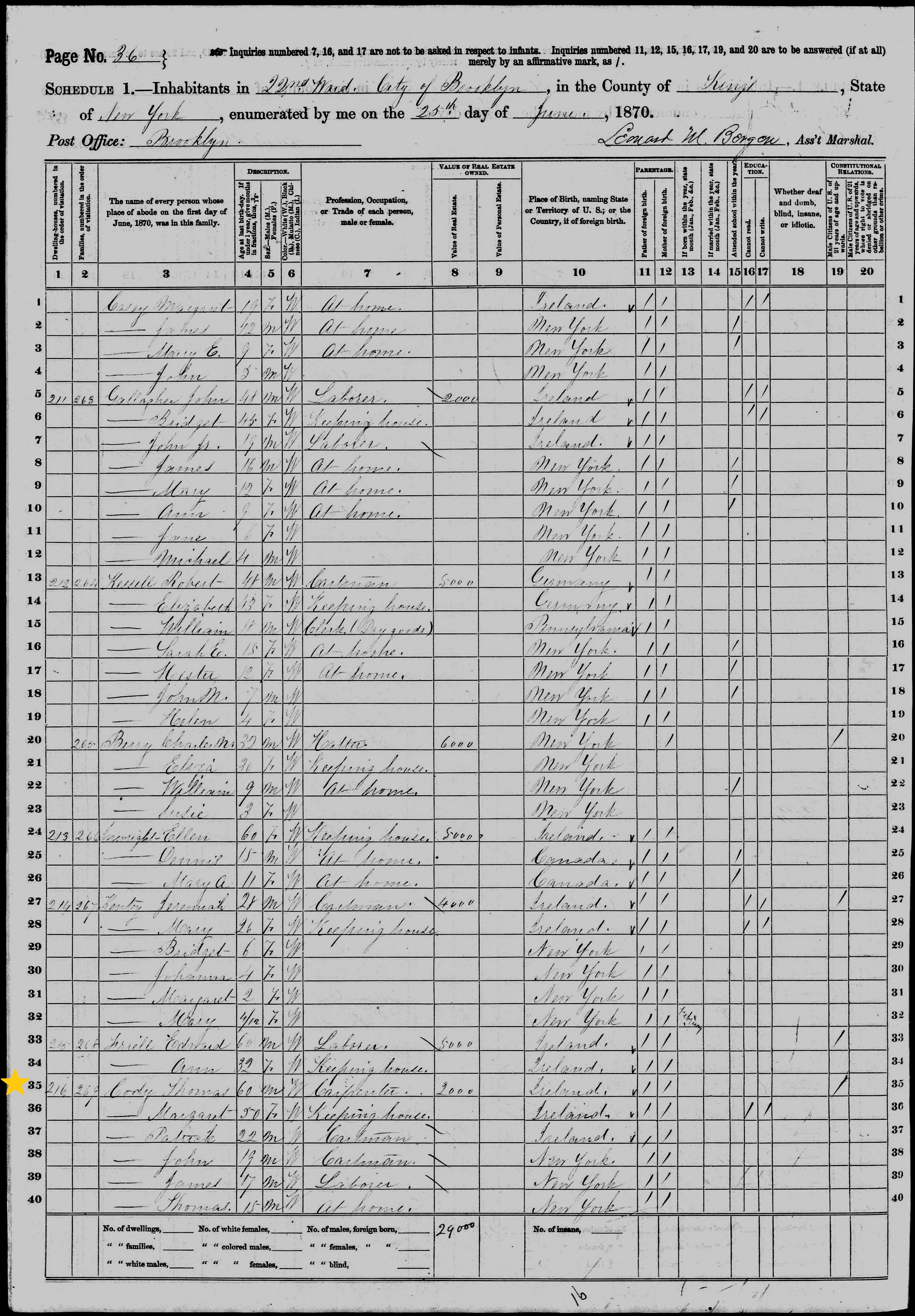 Thomas Cody; 1870 Census
