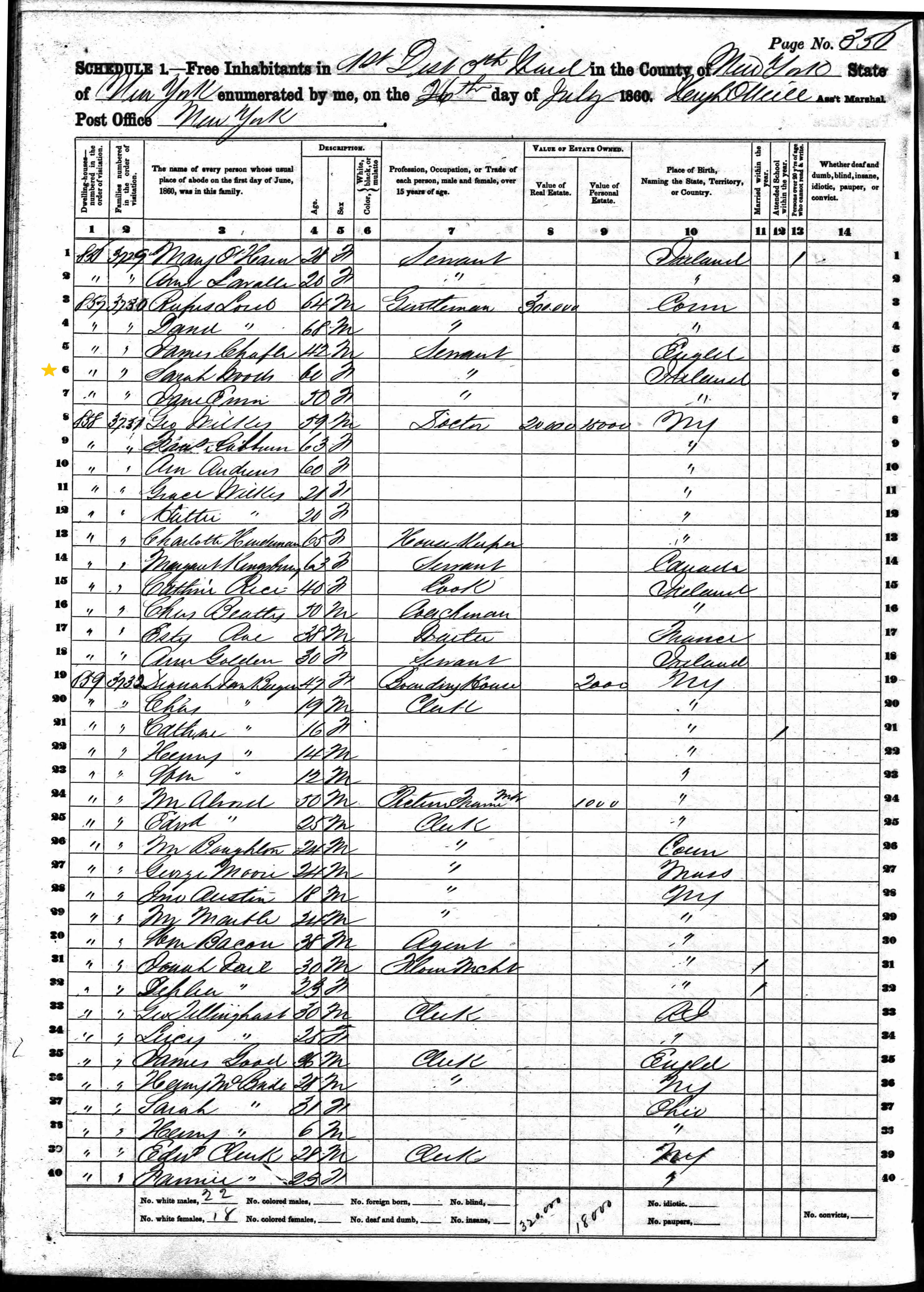 Sarah Woods; 1860 Census