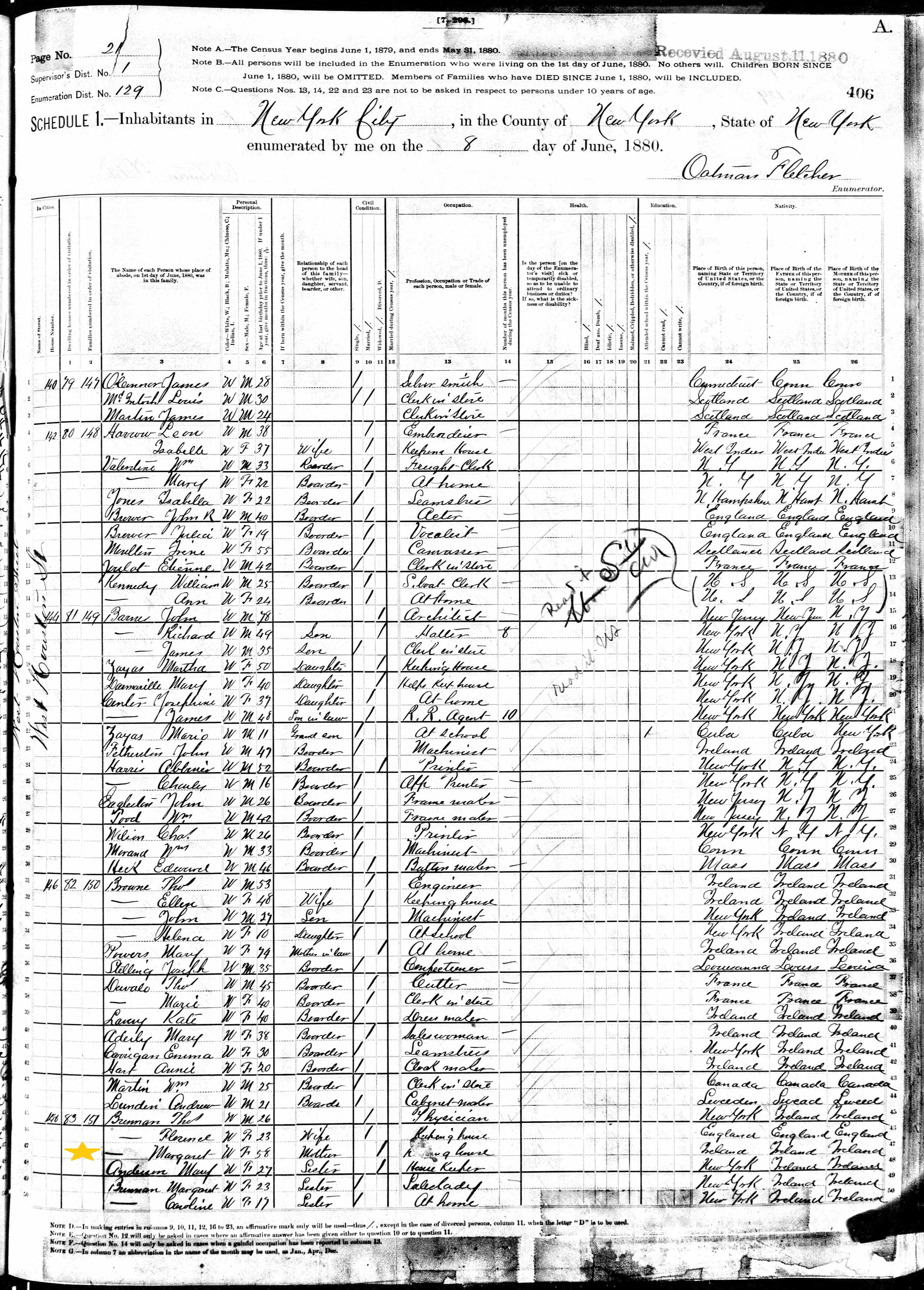 Henry Brennan, Surviving Family Members; 1880 Census (1)