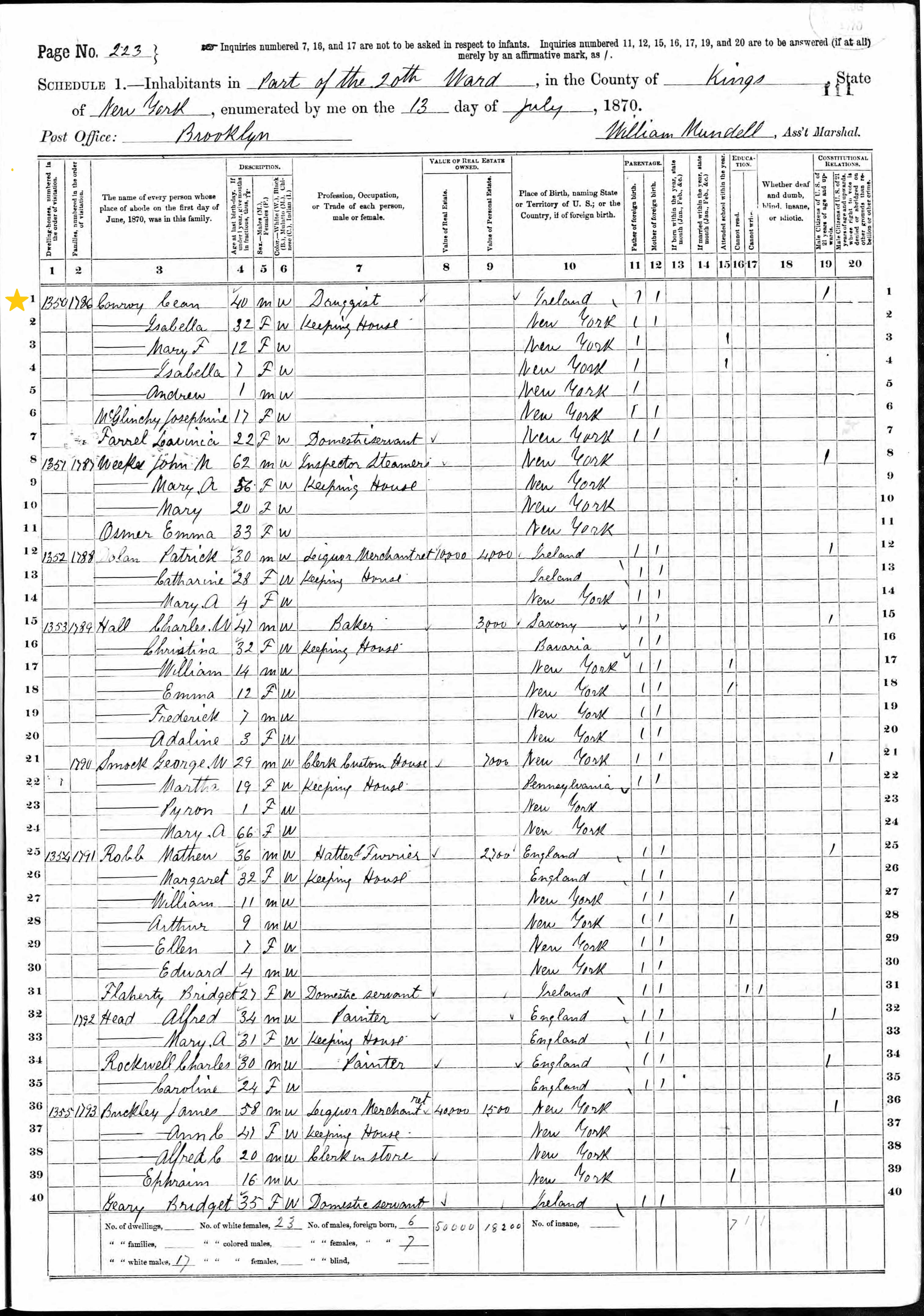 Cean Conroy; 1870 Census