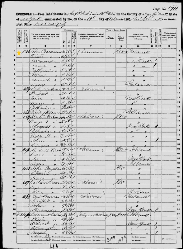 Ellen Corcoran; 1860 Census