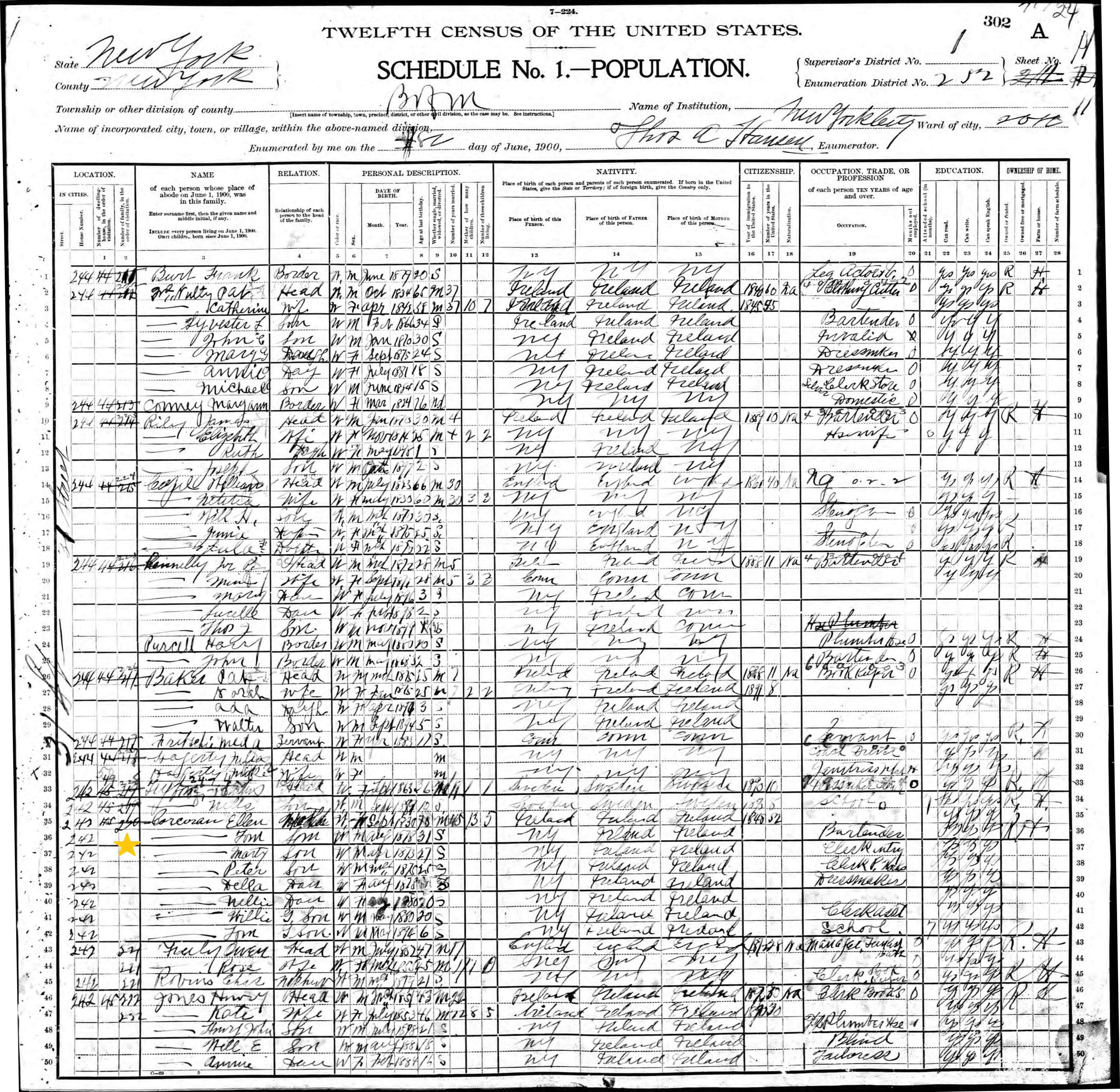Ellen Corcoran; 1900 Census