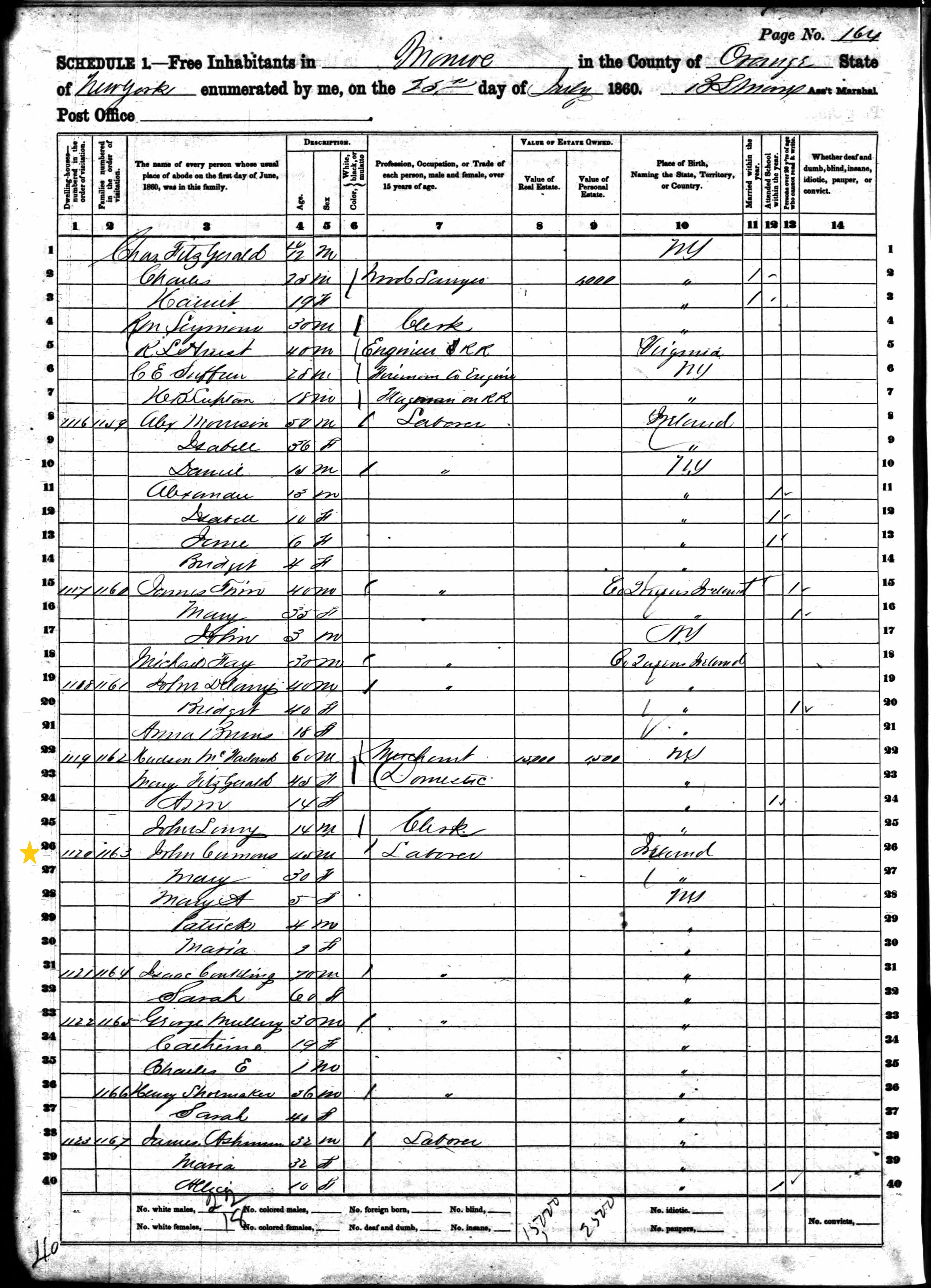 John and Mary Cummins; 1860 Census