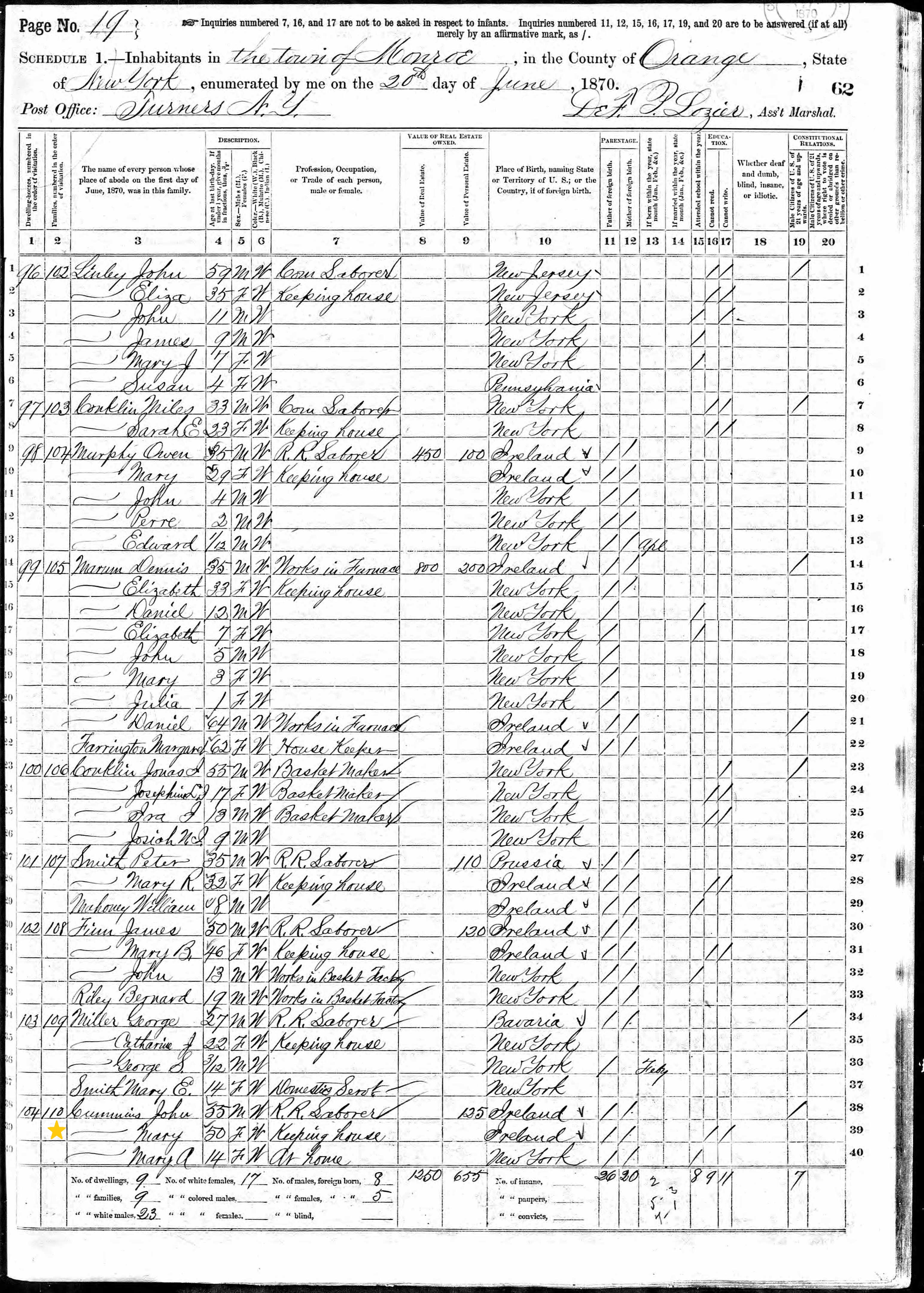 John and Mary Cummins; 1870 Census (1)