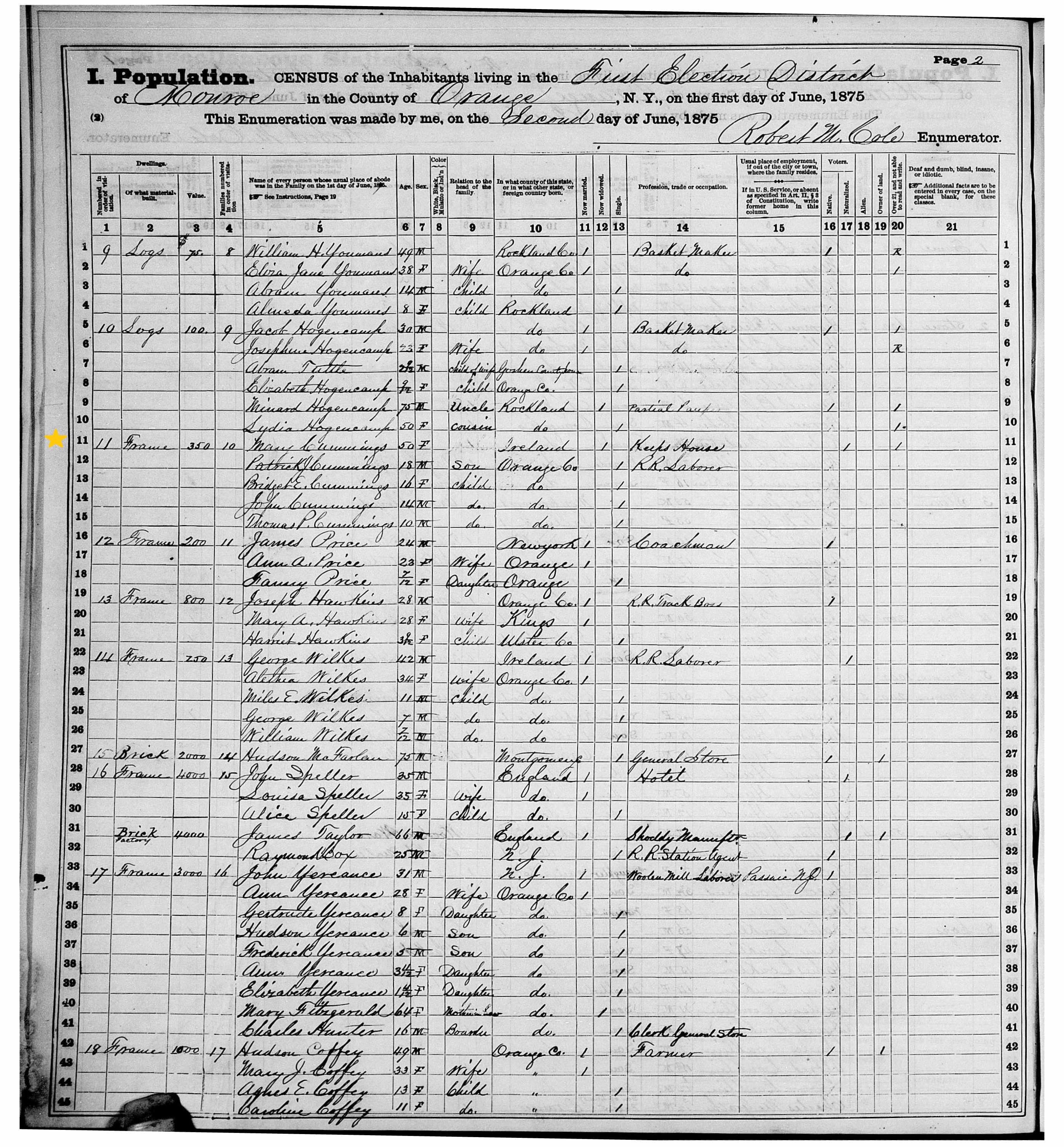 Mary Cummins; 1875 Census