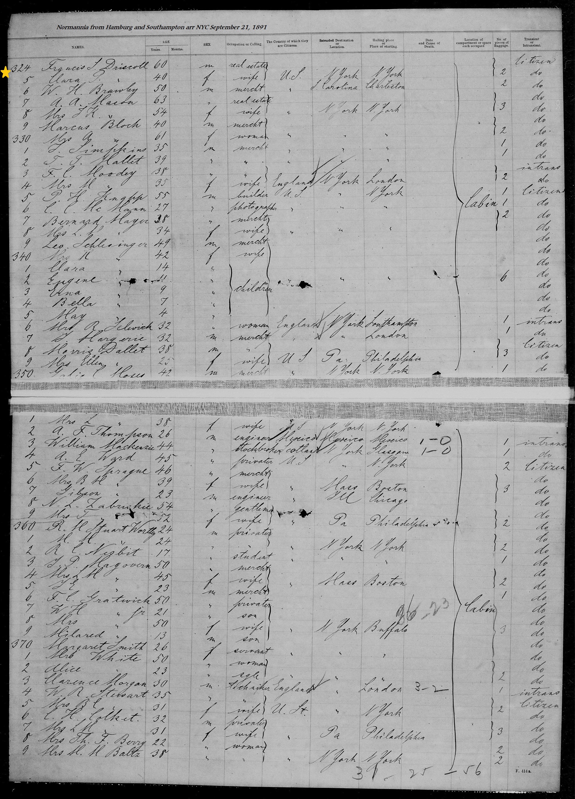 Francis and Clara Driscoll on Ship Manifest
