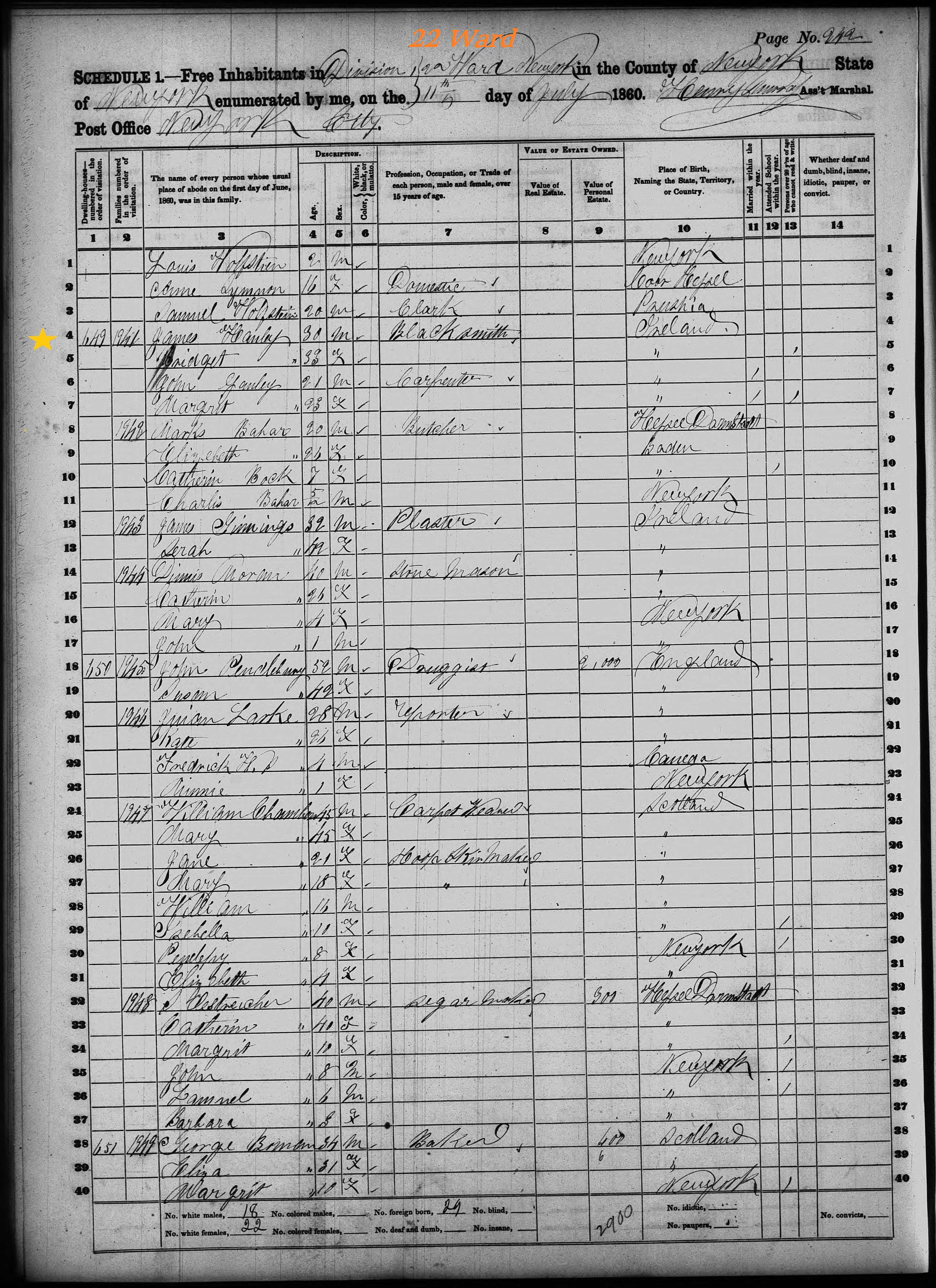 John Ganly; 1860 Census