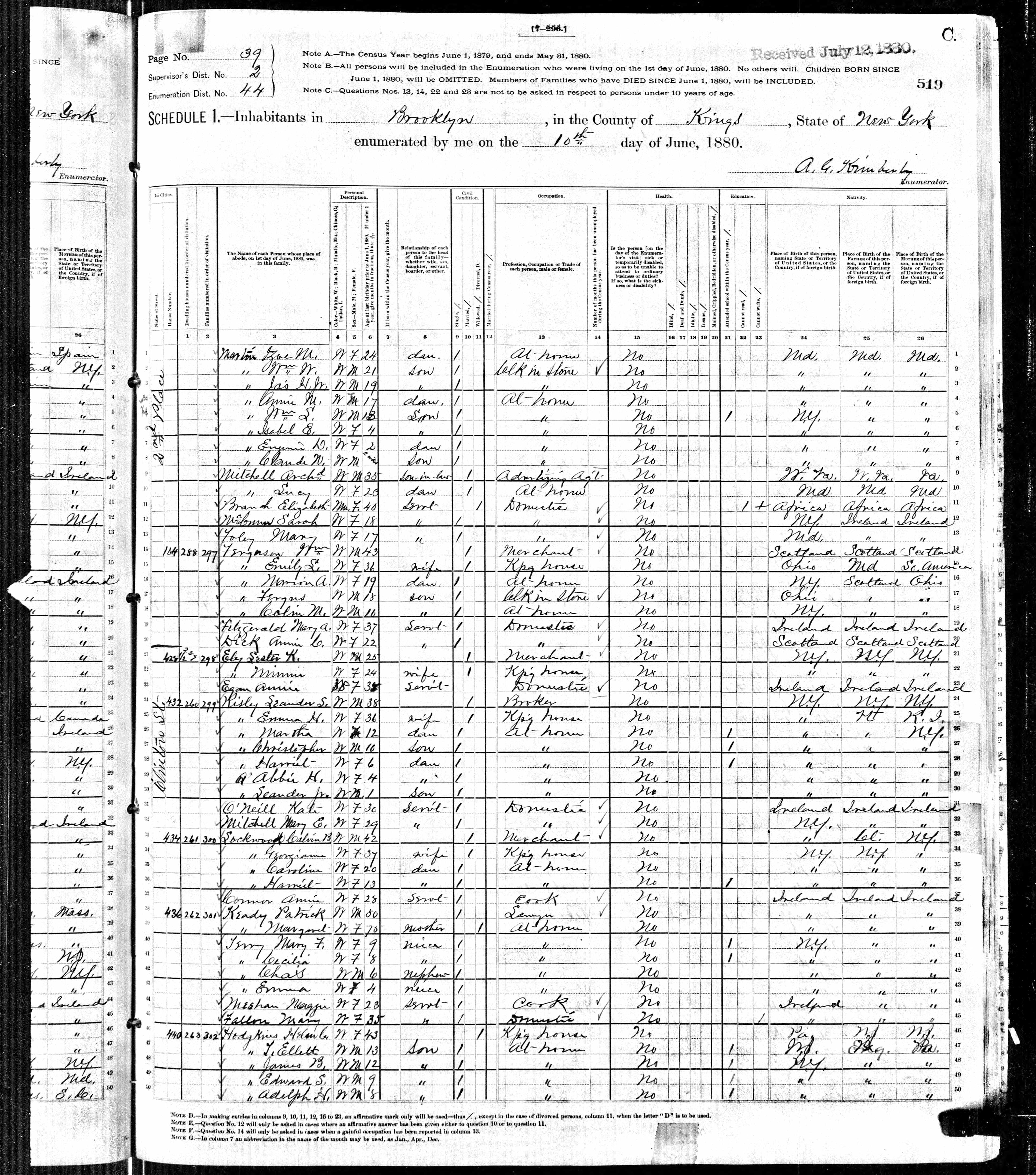 Patrick Keady; 1880 Census