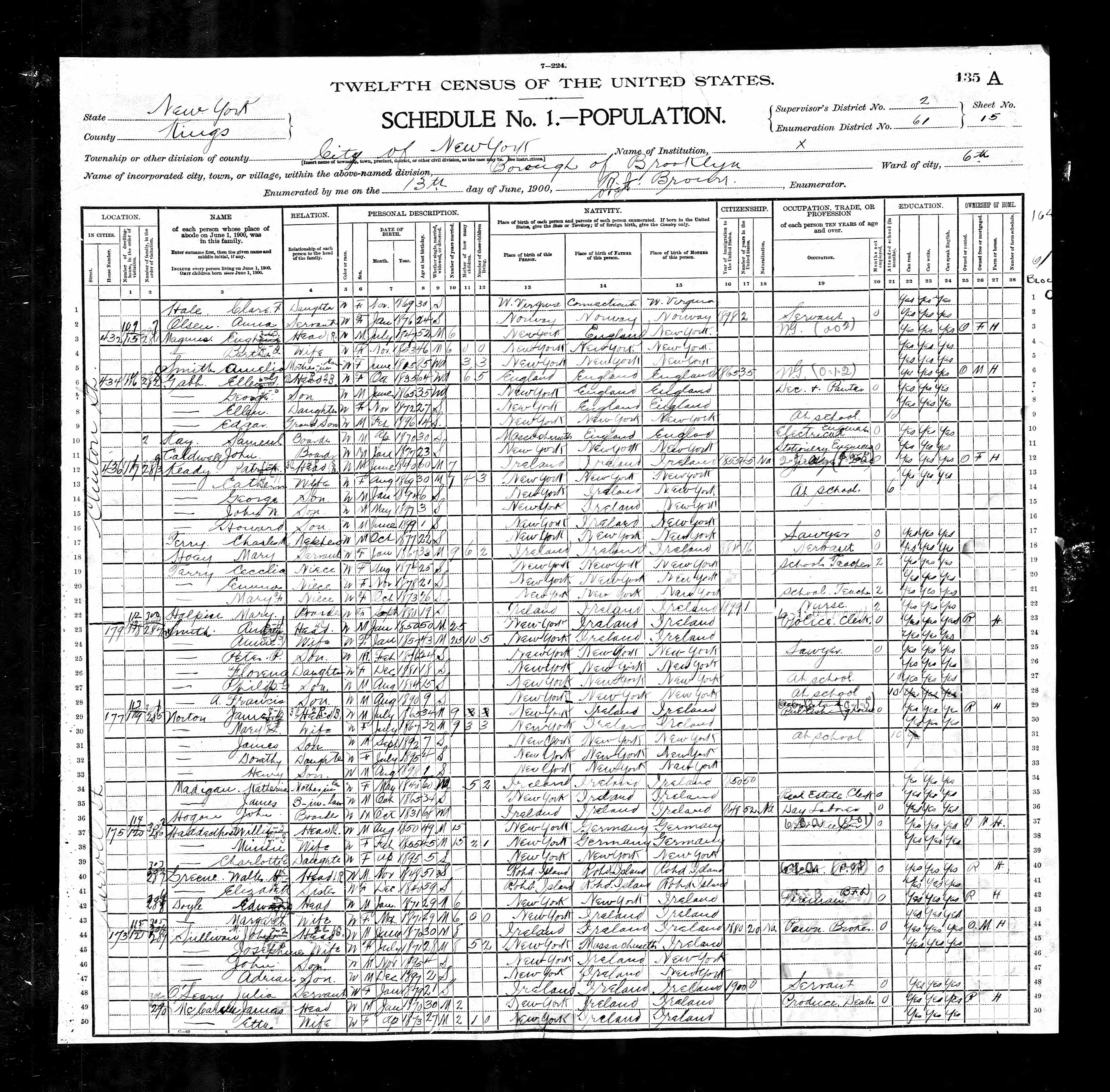 Patrick Keady; 1900 Census