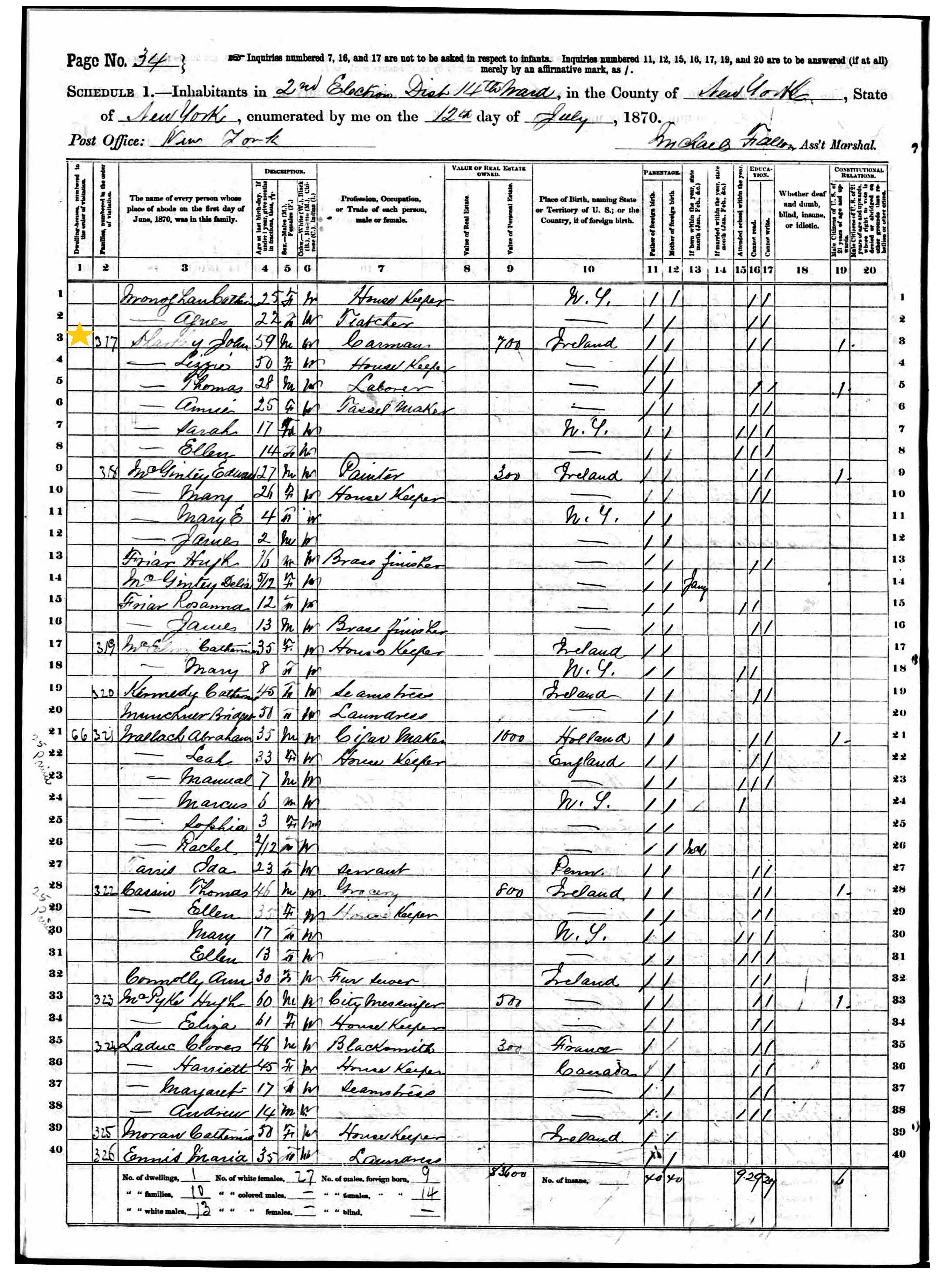 John Sharkey; 1870 Census