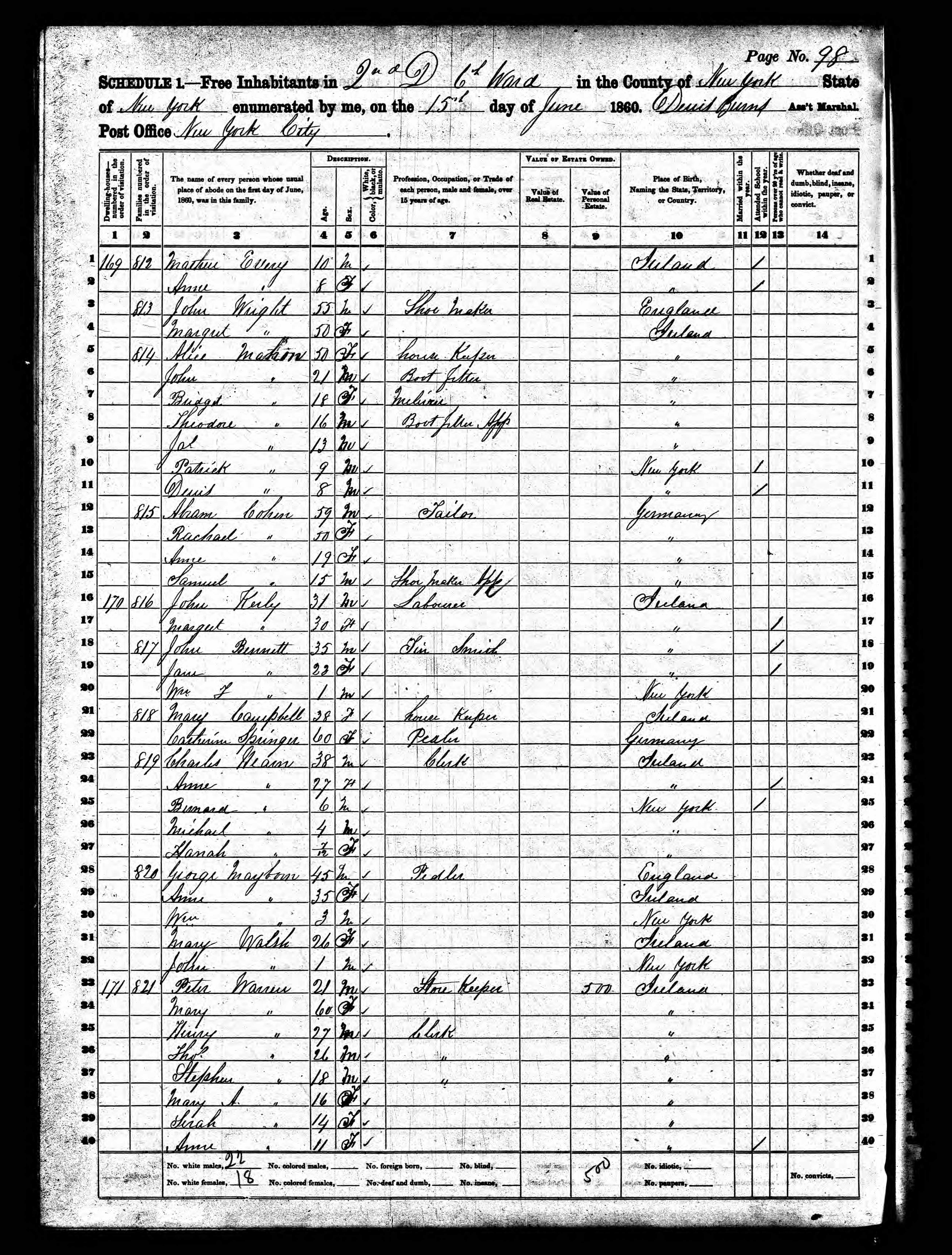 Peter Warren; 1860 Census