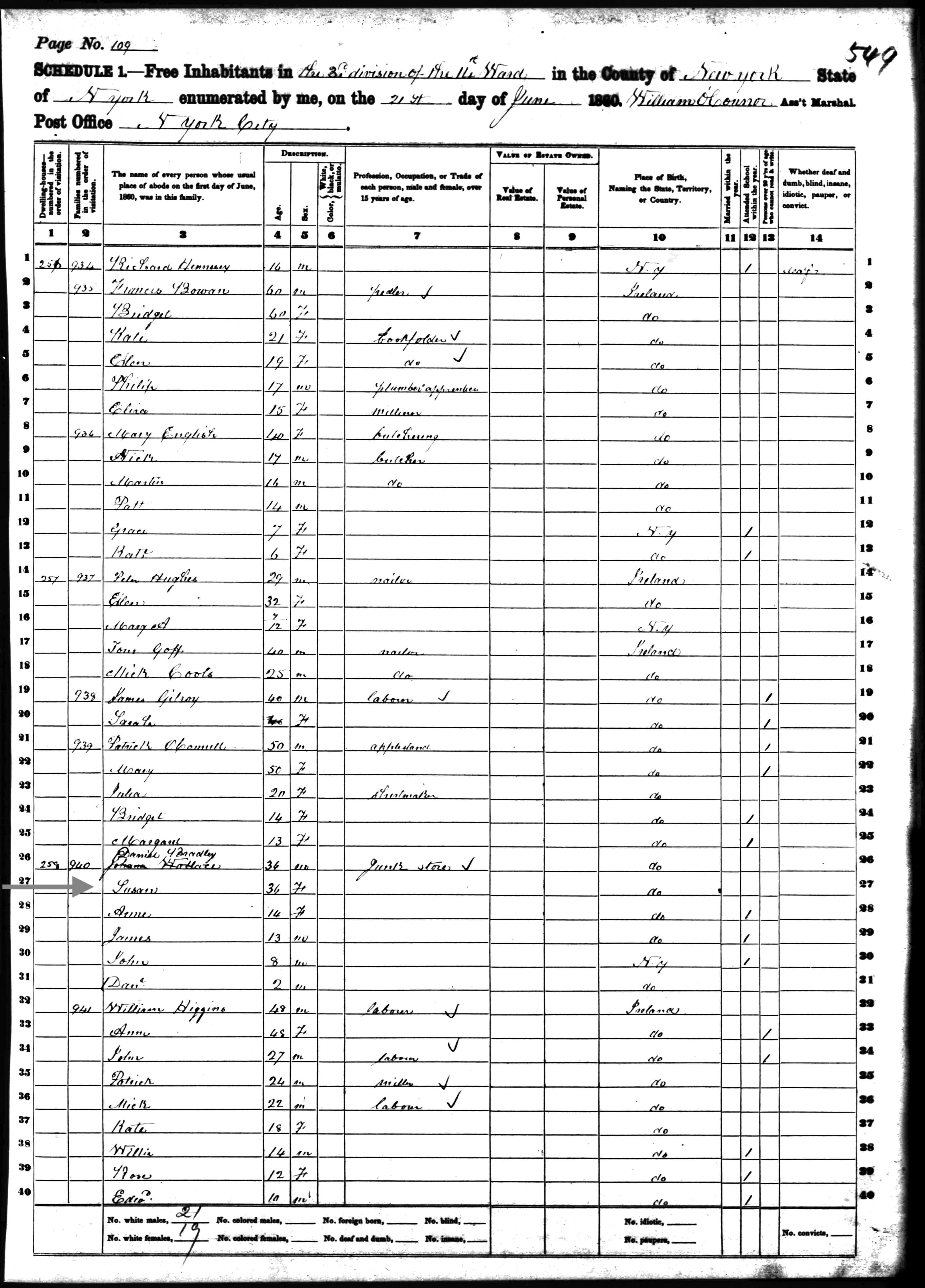 Daniel and Susan Bradley; 1860 Census