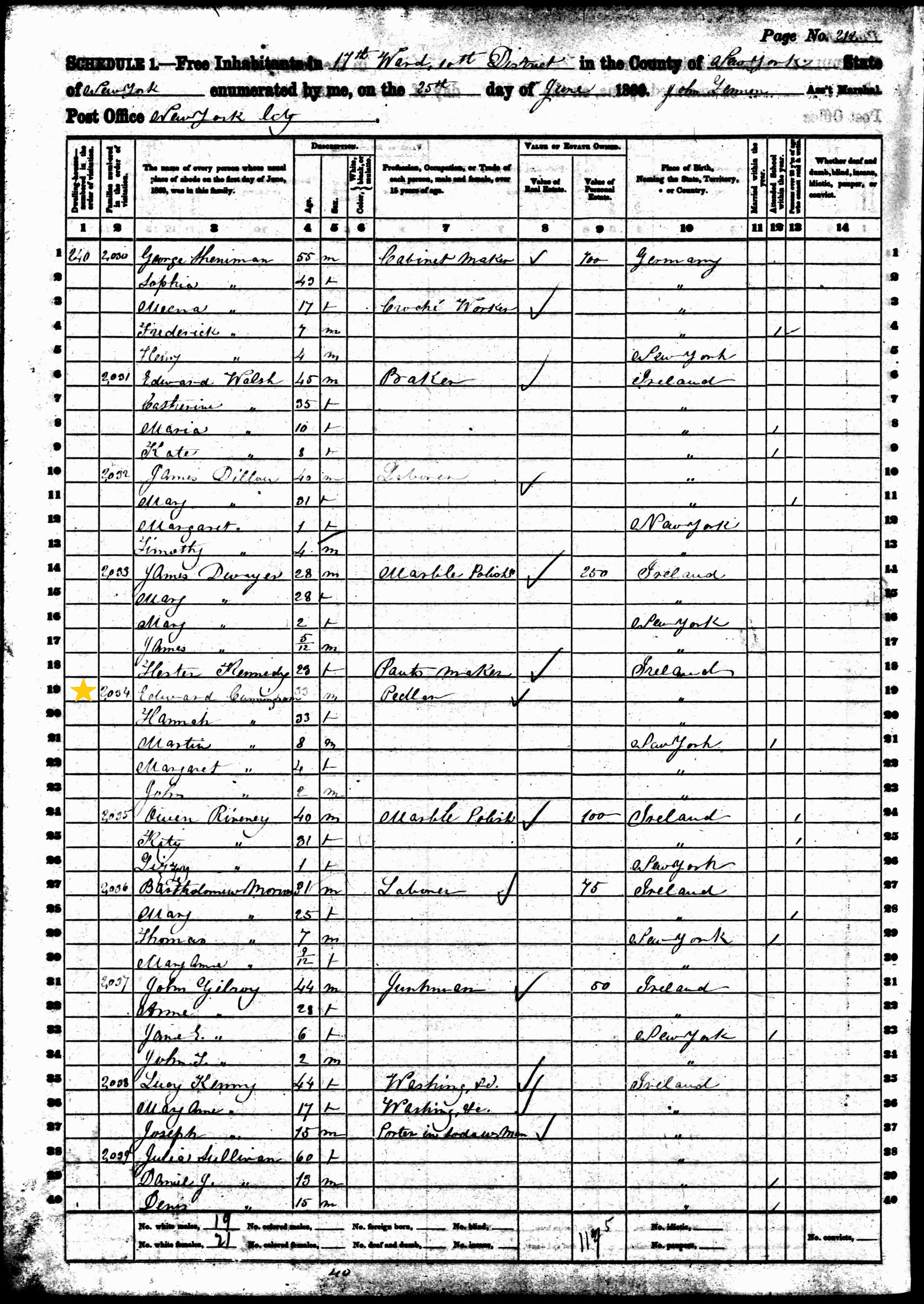 Edward Cunningham; 1860 Census