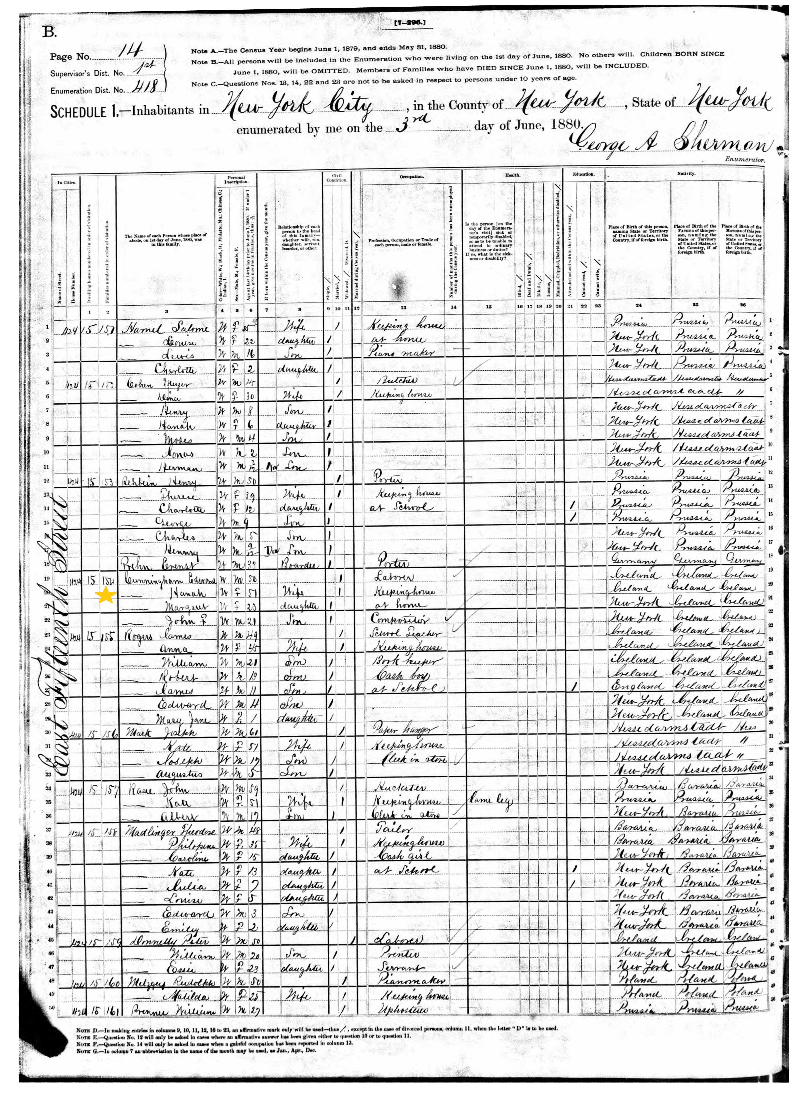Edward Cunningham; 1880 Census