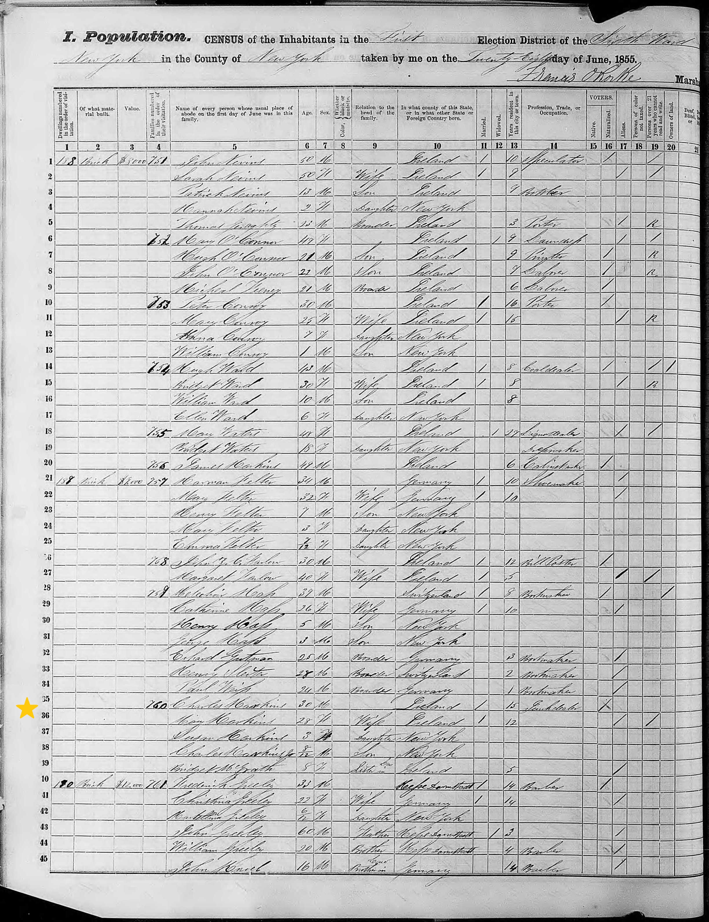 Mary Harkin; 1855 Census