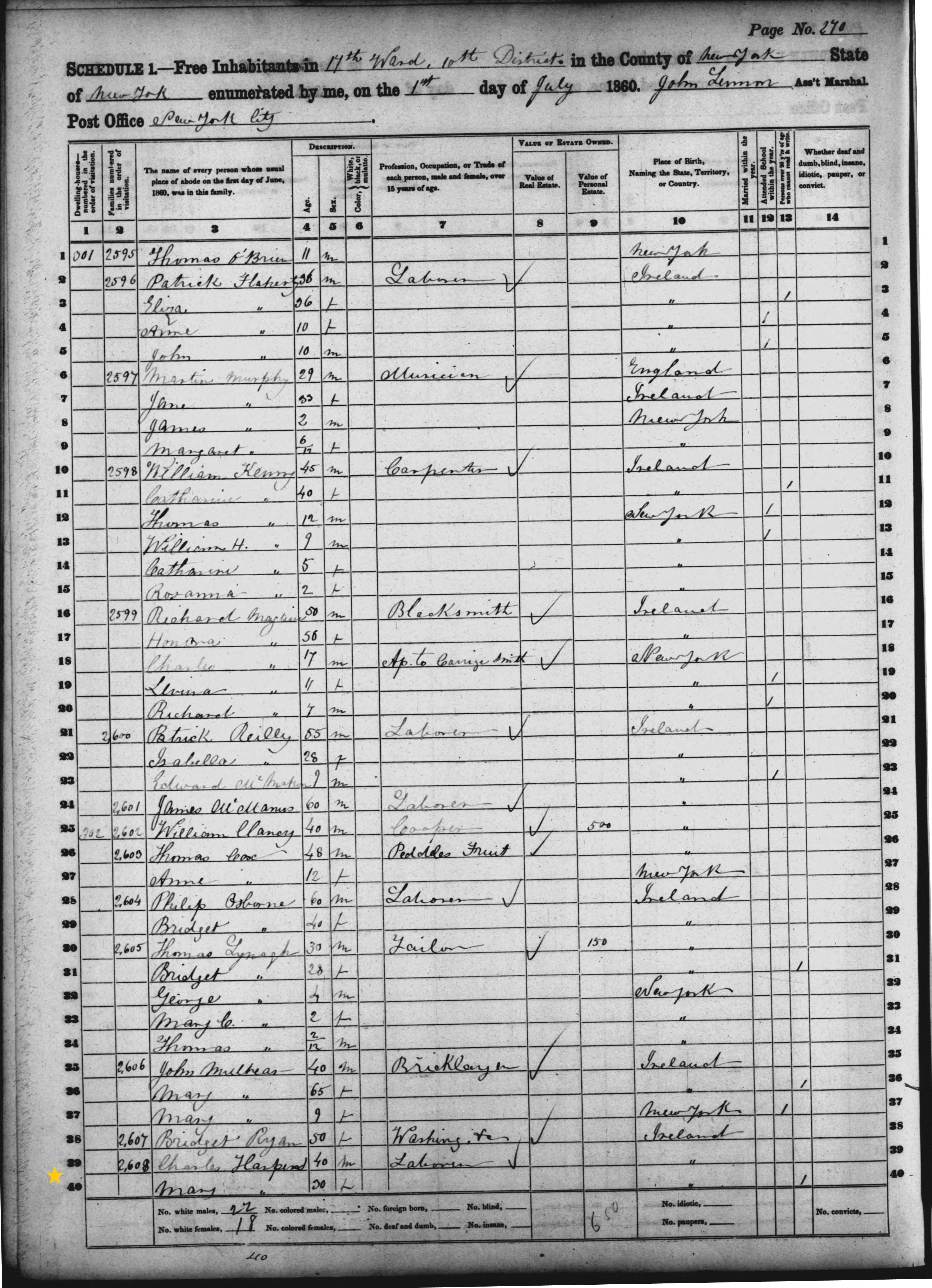 Mary Harkin; 1860 Census (1)