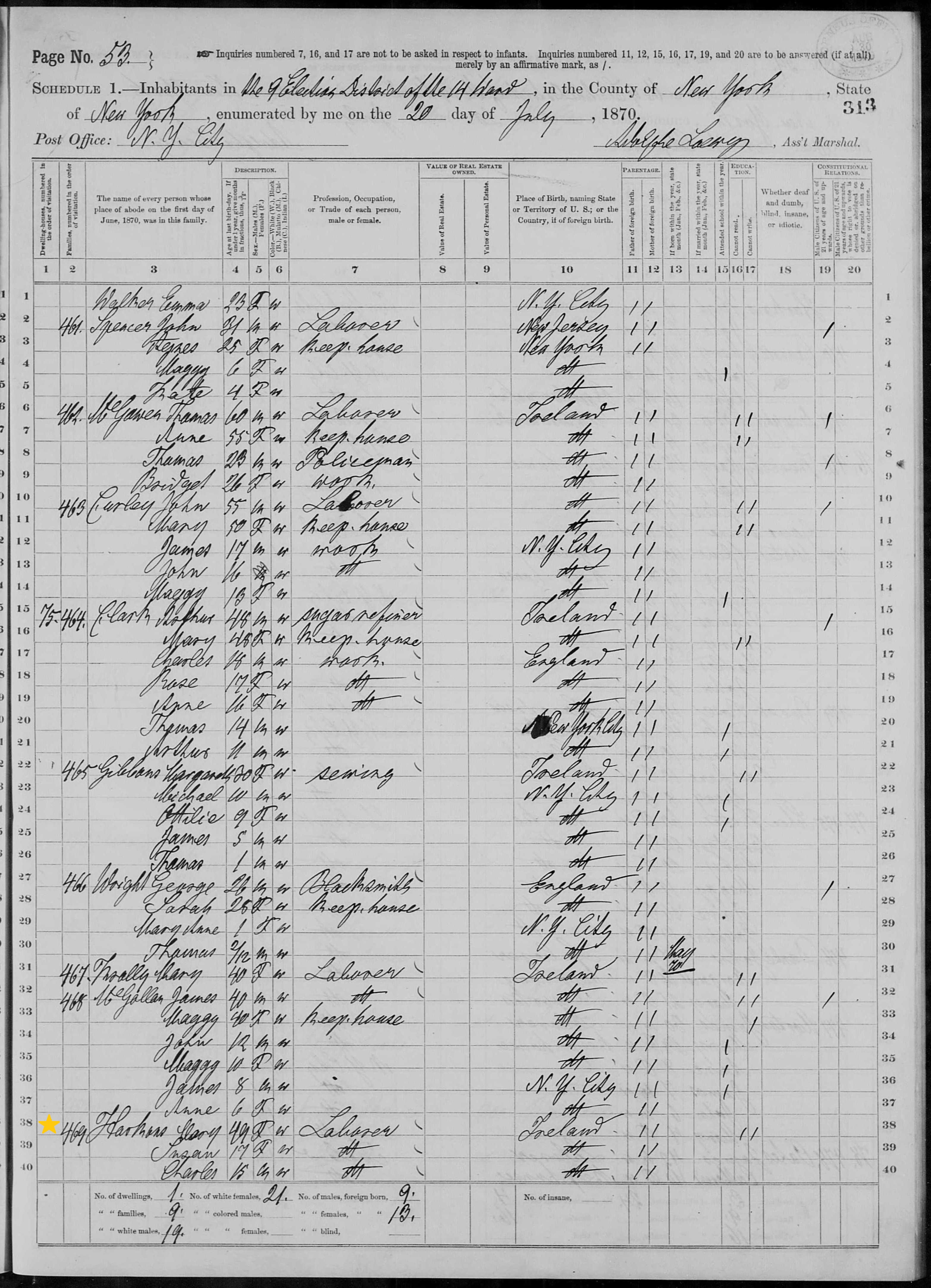 Mary Harkin; 1870 Census (1)